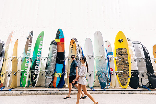 In Hawaiian, Oahu means “gathering place,” but it might as well mean “something for everyone.” Food lovers can chase bold new flavors in Kaimuki and Chinatown. Trendsetters will find one-of-a-kind fashion boutiques in Kakaako and Kailua. History buffs can step back in time at Pearl Harbor. And if the ocean’s calling, surfers, snorkelers, and paddleboarders have their pick of world-famous shorelines across the island.