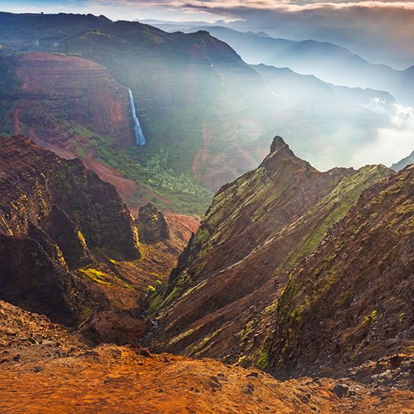 See Waimea Canyon. The “Grand Canyon of the Pacific” does not fall short of its title. It is rugged and red with an expanse that is 3600 feet deep and 14 miles long!