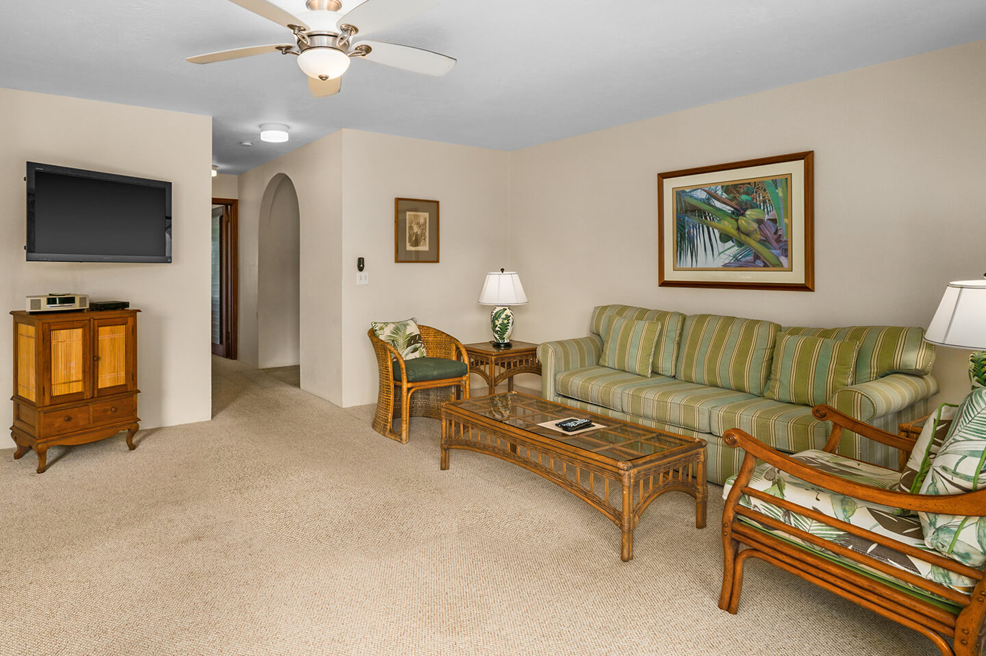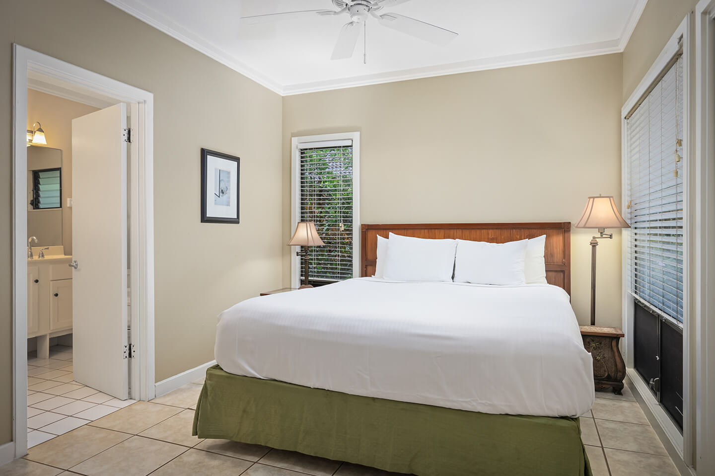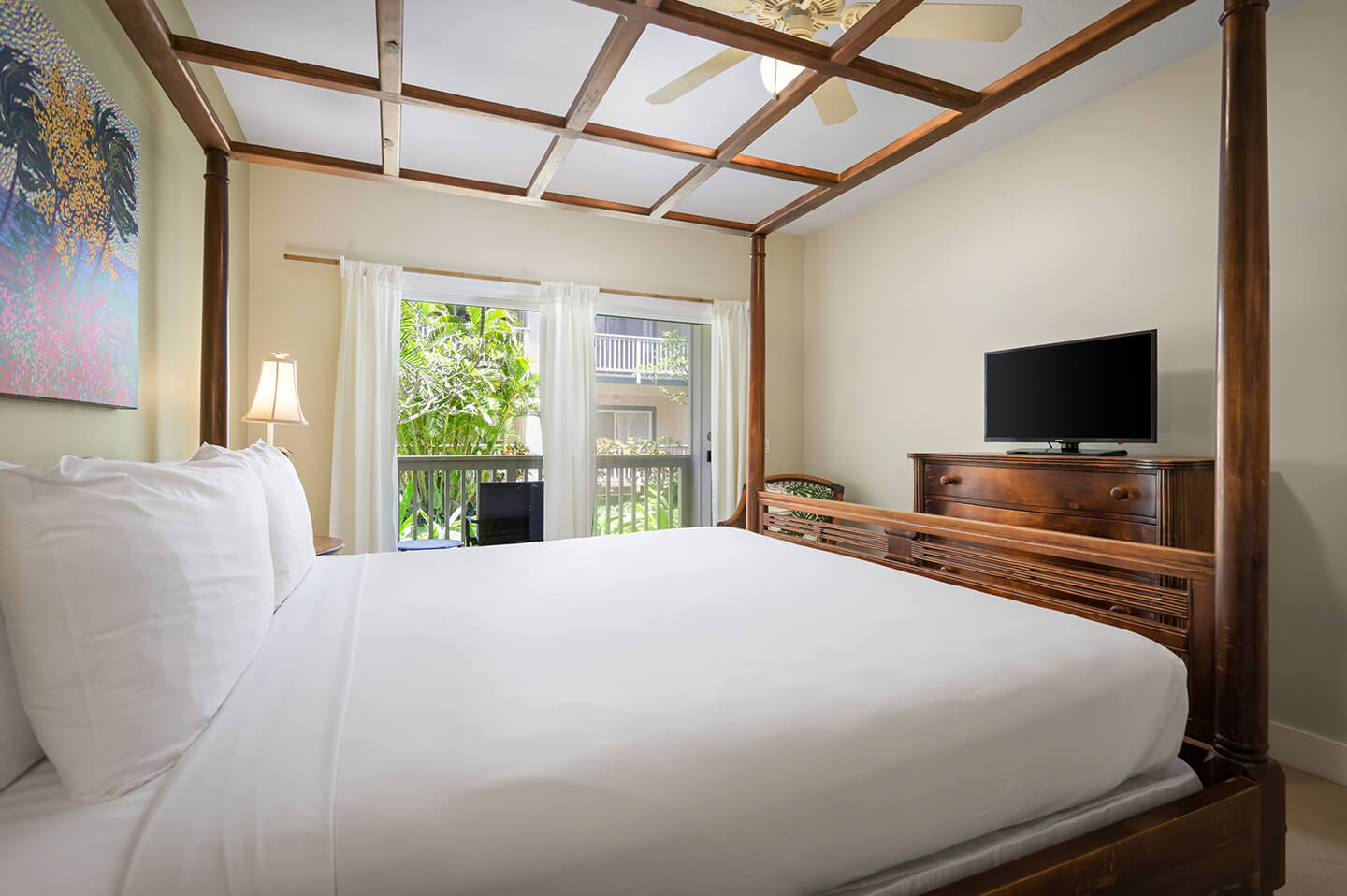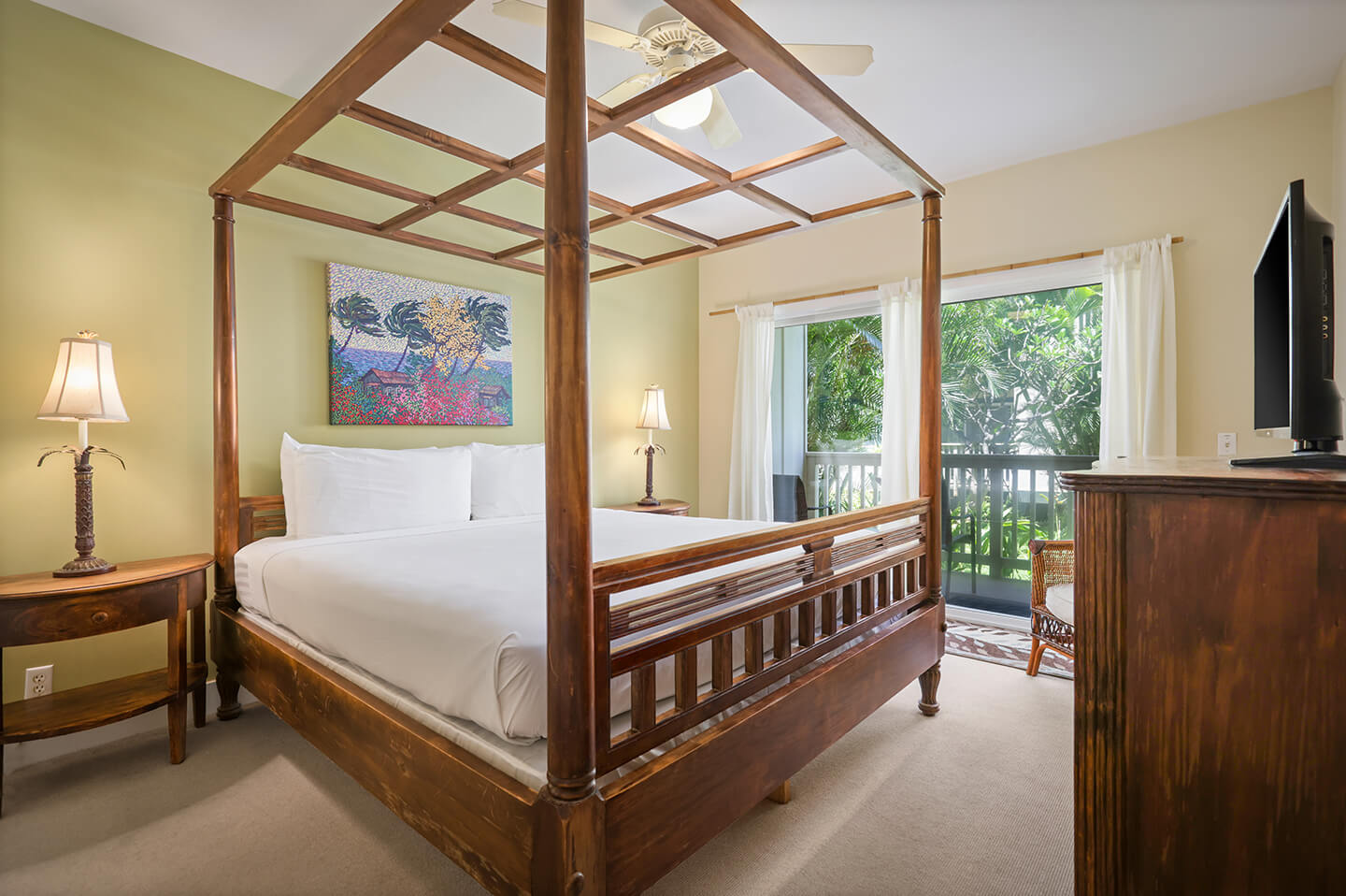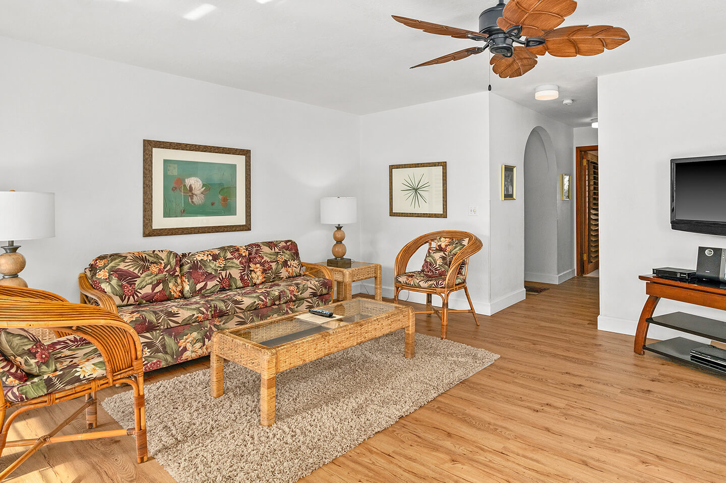 Start your day with tranquil garden views, just a leisurely walk to the beach. This one-bedroom suite offers plenty of space to unwind, featuring a seperate living area, fully equipped kitchen, washer/dryer, and a private balcony or patio to soak in the lush surroundings.
