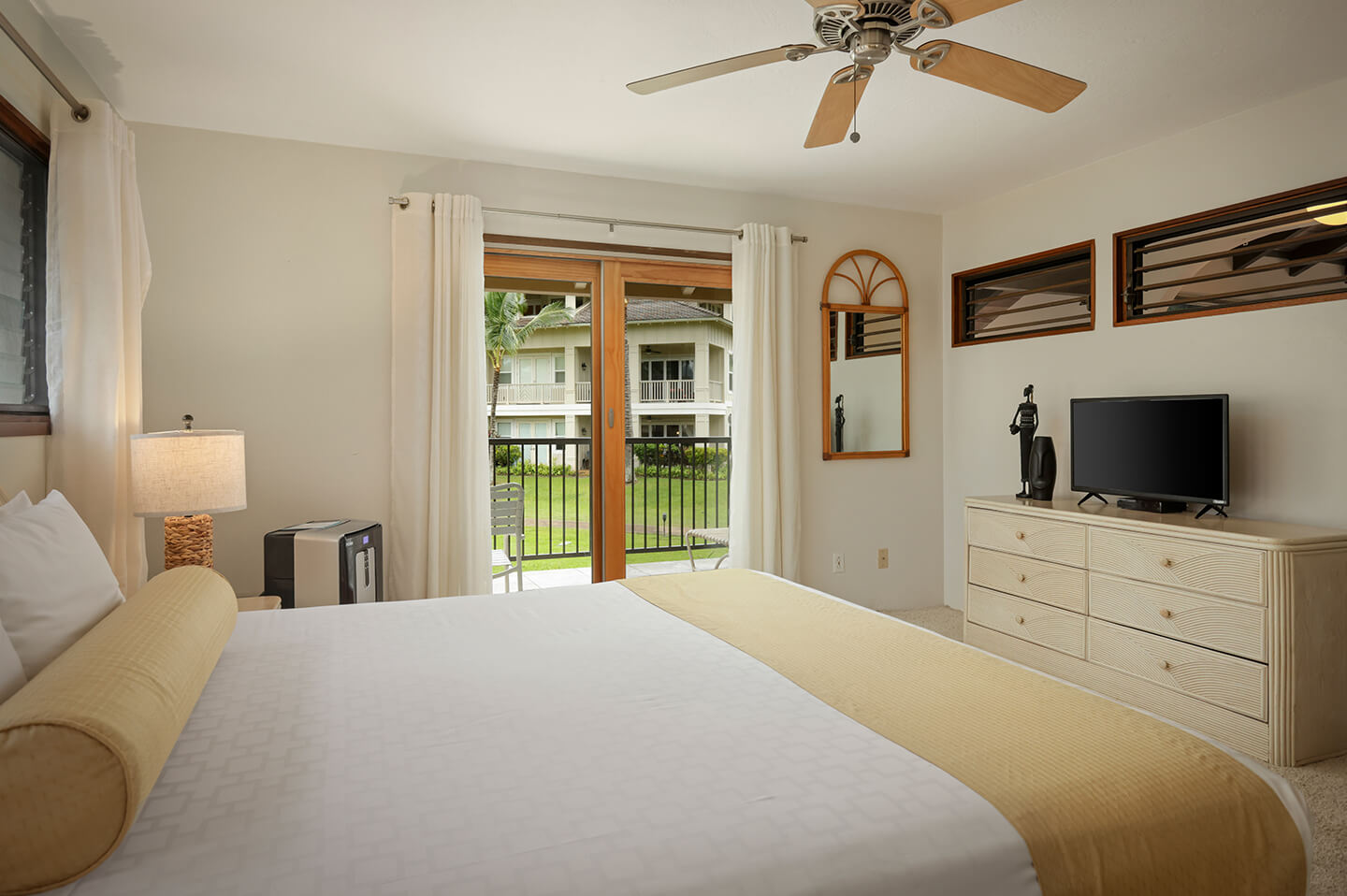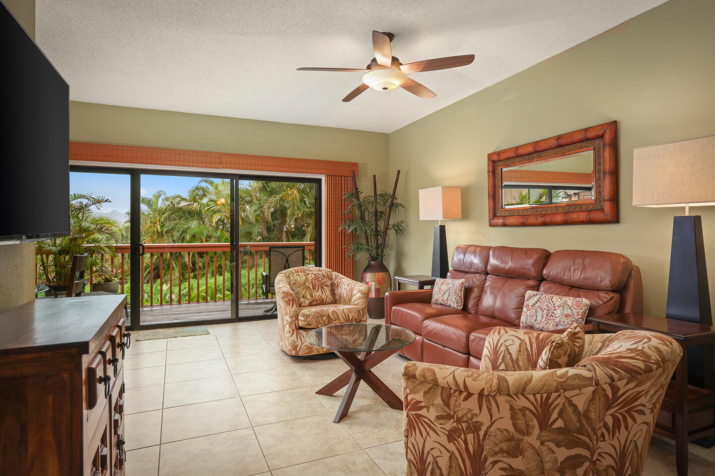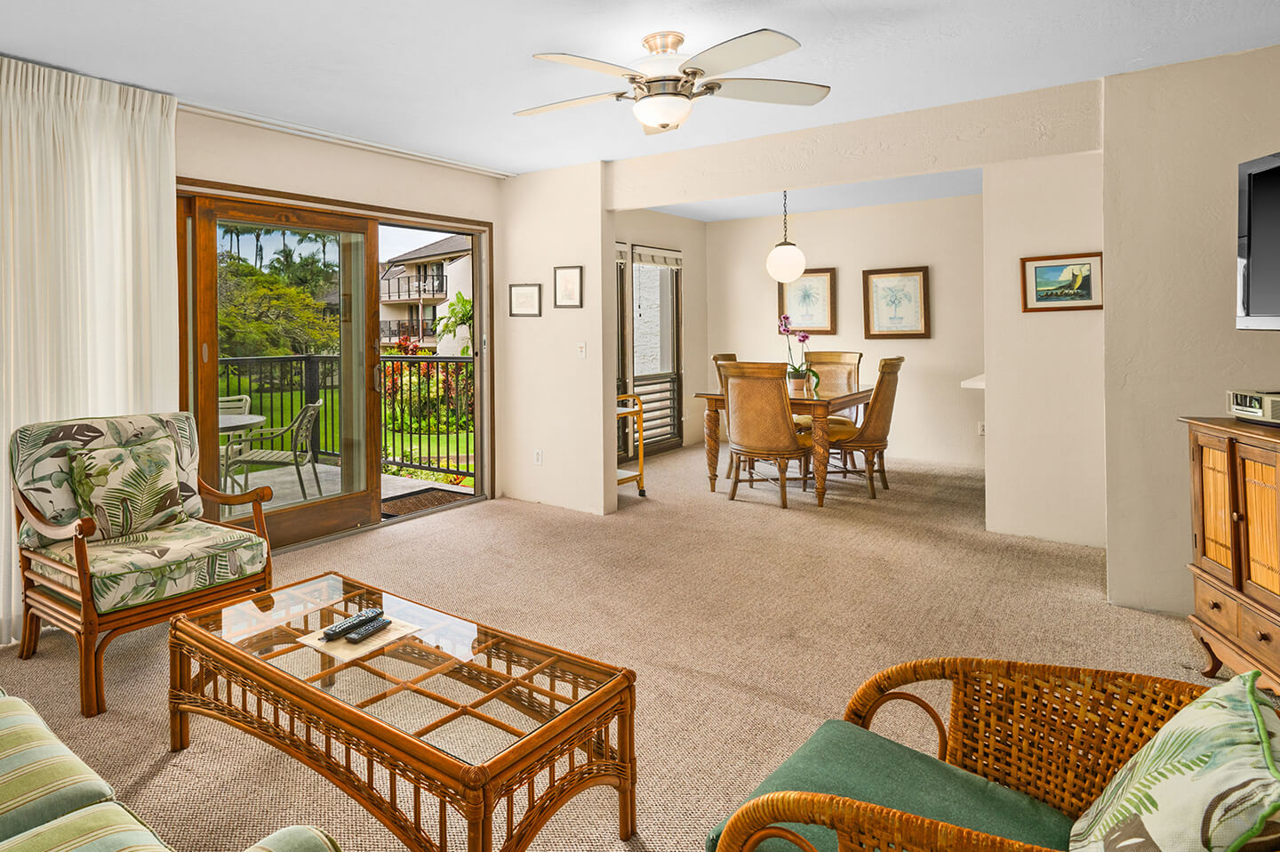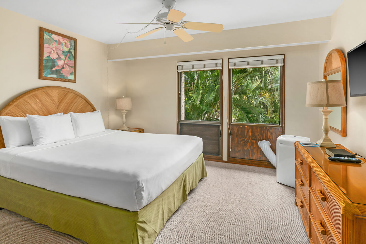 Start your day with tranquil garden views, just a leisurely walk to the beach. This one-bedroom suite offers plenty of space to unwind, featuring a seperate living area, fully equipped kitchen, washer/dryer, and a private balcony or patio to soak in the lush surroundings.
