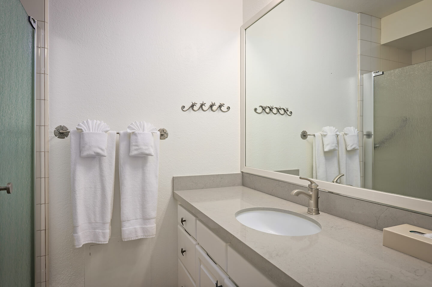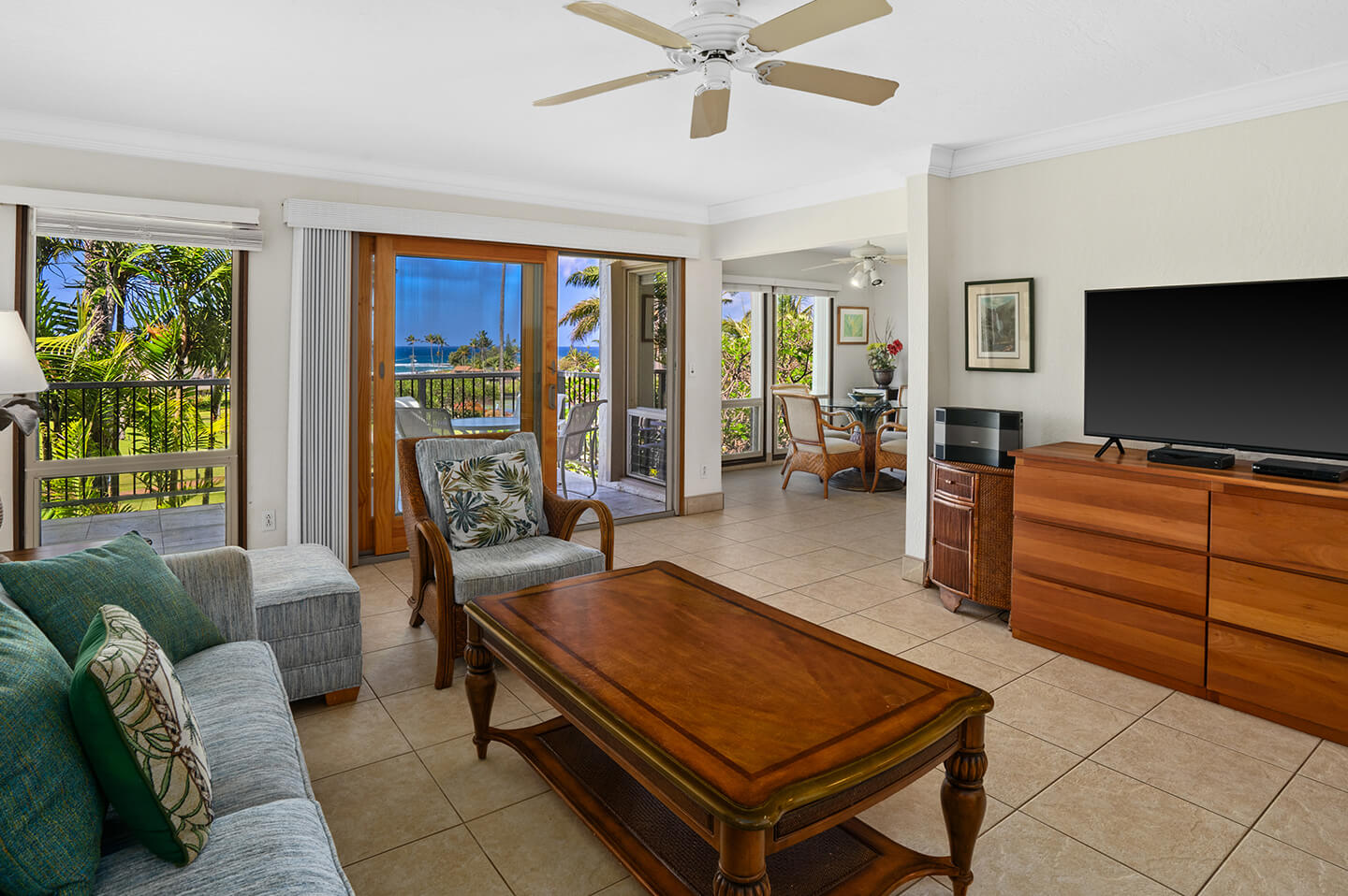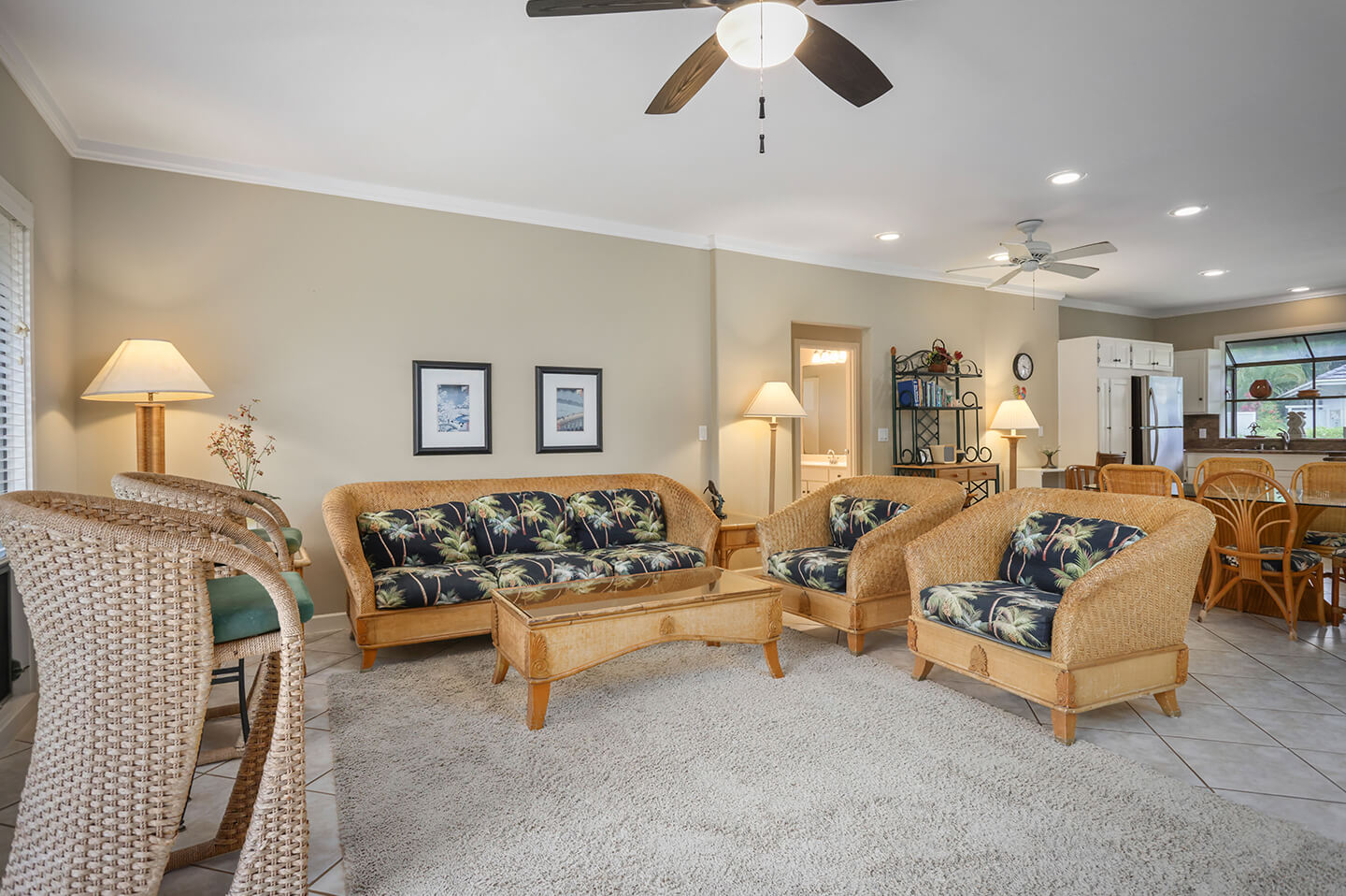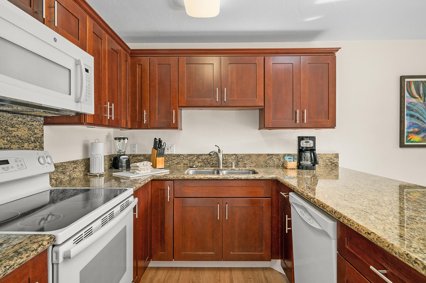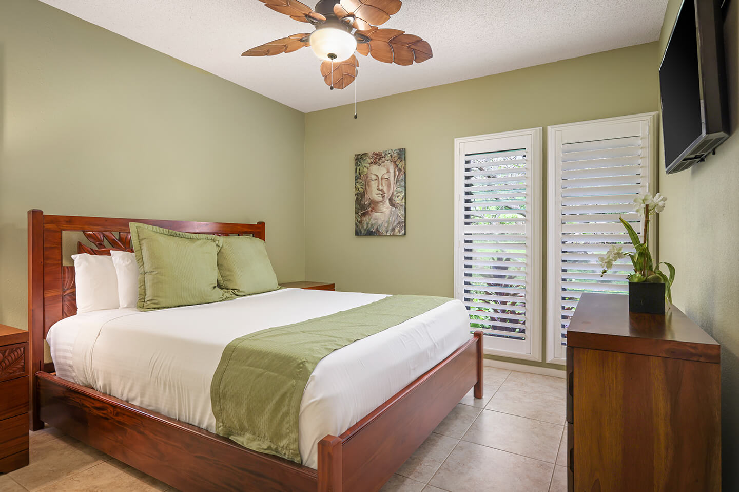 Start your day with tranquil garden views, just a leisurely walk to the beach. This one-bedroom suite offers plenty of space to unwind, featuring a seperate living area, fully equipped kitchen, washer/dryer, and a private balcony or patio to soak in the lush surroundings.