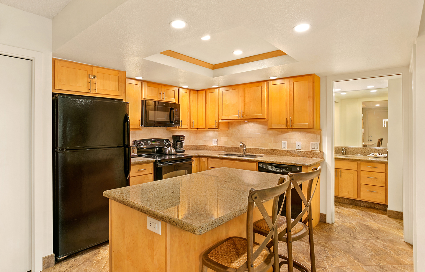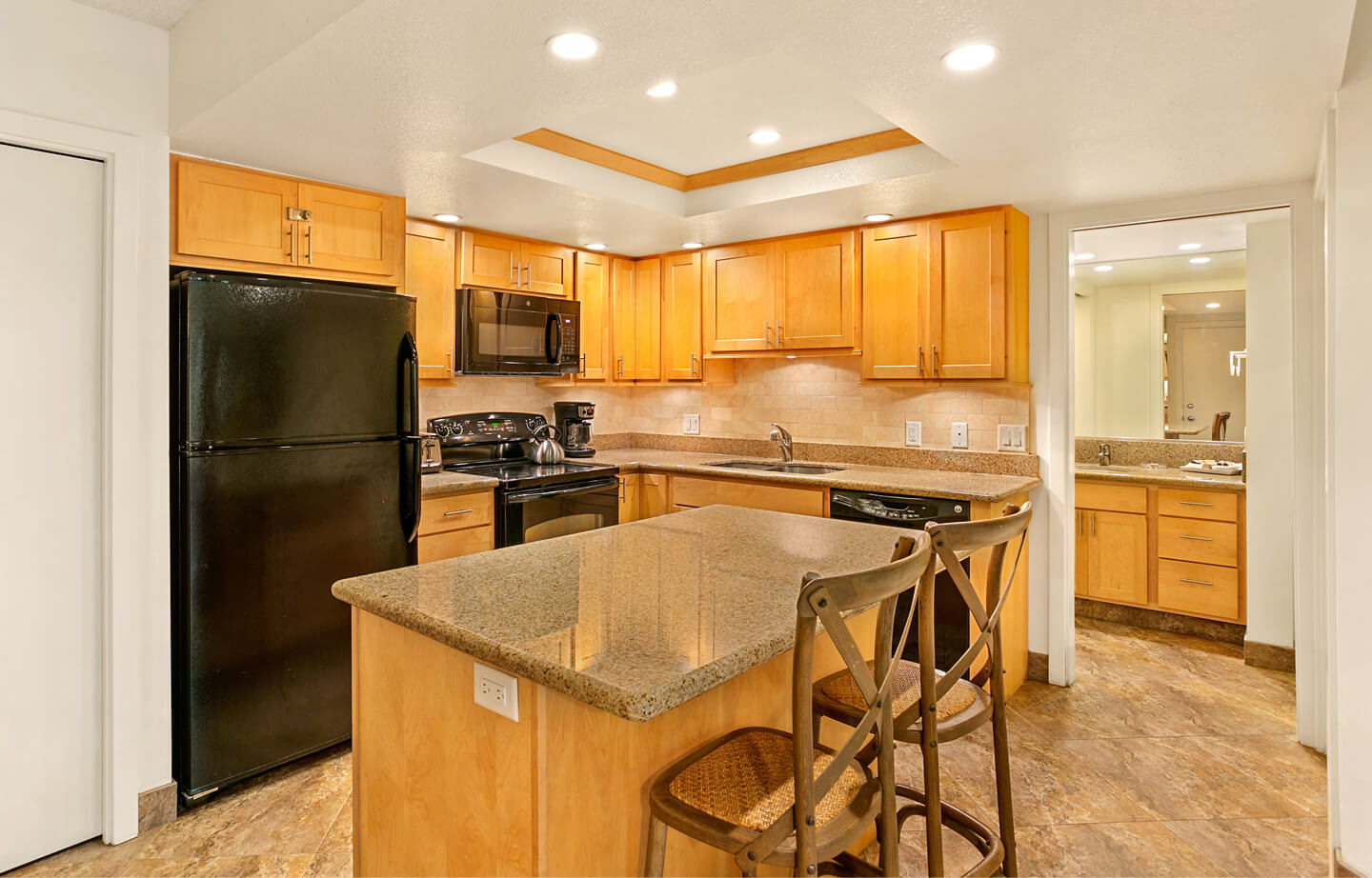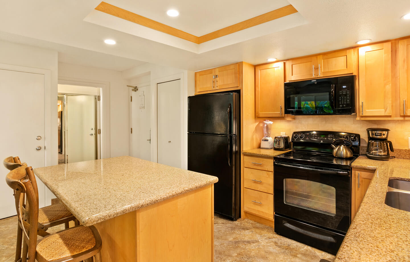 A spacious option for families and groups traveling to Maui, two bedroom suites can accommodate up to six guests and include a full kitchen for preparing delicious island-inspired meals, and a separate living area for unwinding together. These suites feature two bathrooms, a private balcony, and in-suite washer/dryer units.