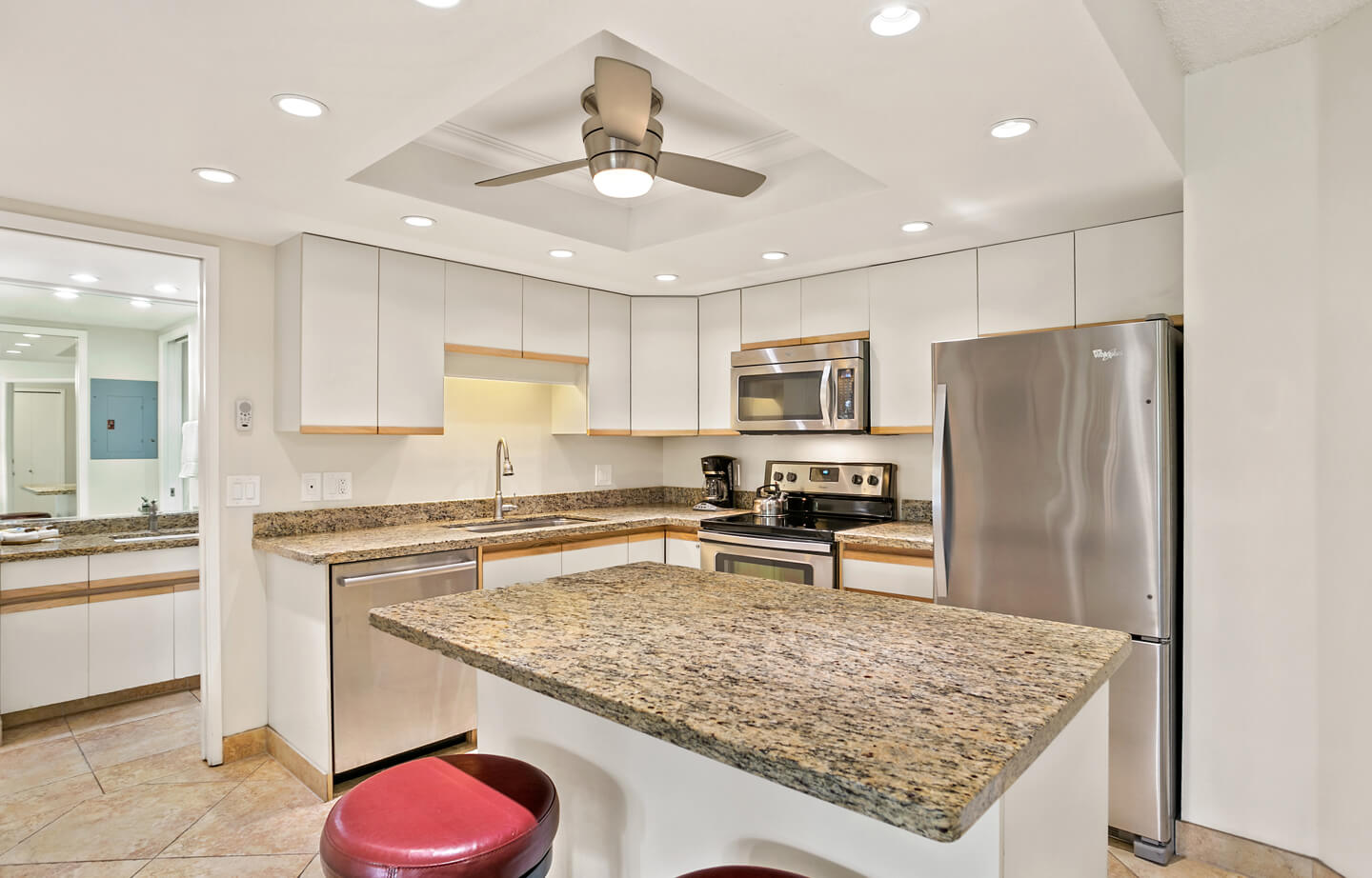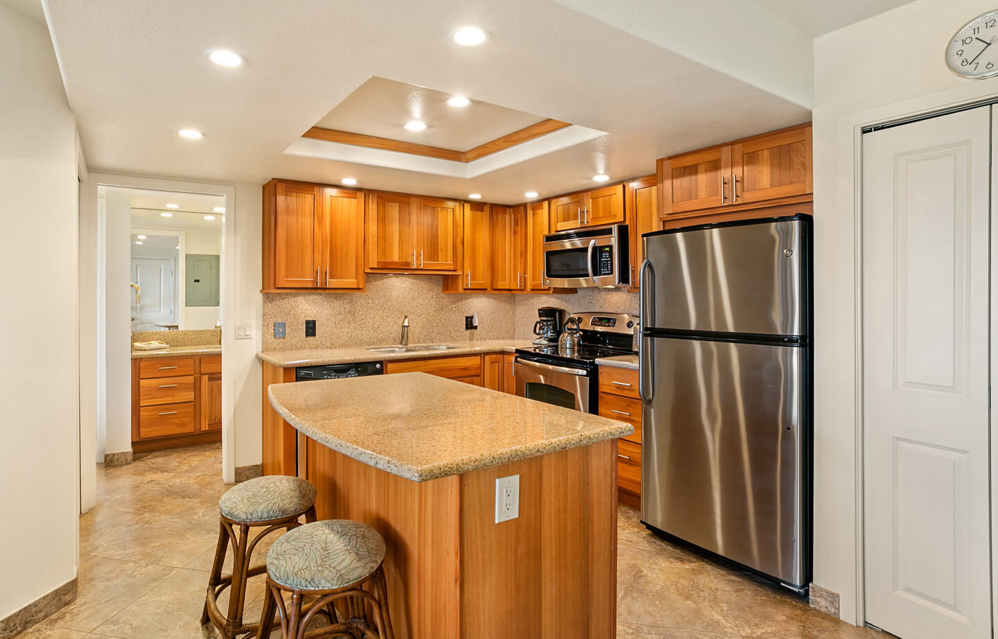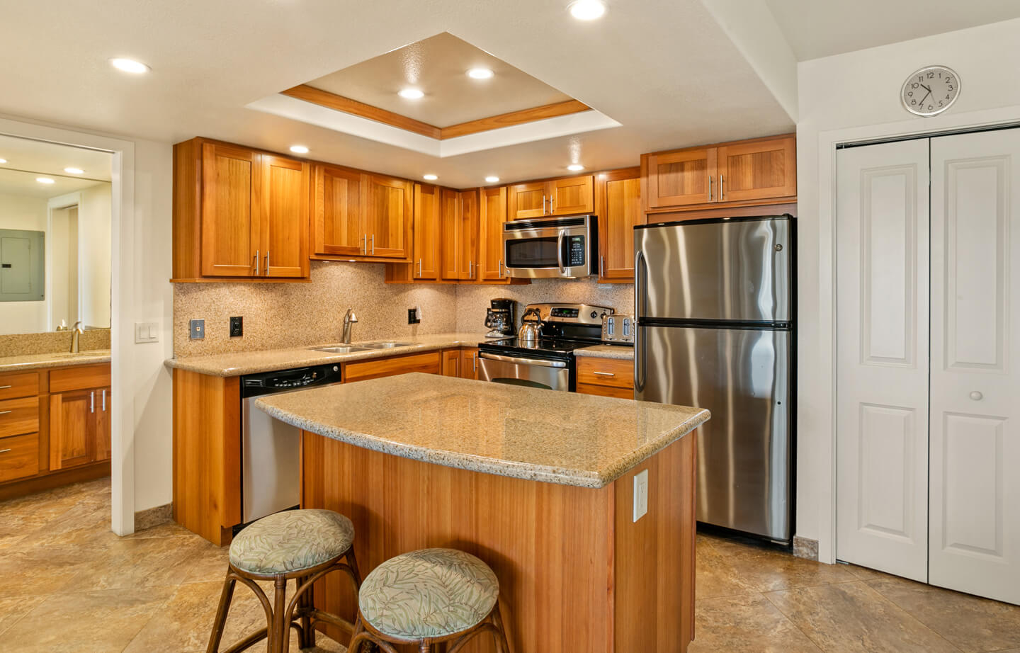 A spacious option for families and groups traveling to Maui, two bedroom suites can accommodate up to six guests and include a full kitchen for preparing delicious island-inspired meals, and a separate living area for unwinding together. These suites feature two bathrooms, a private balcony, and in-suite washer/dryer units.