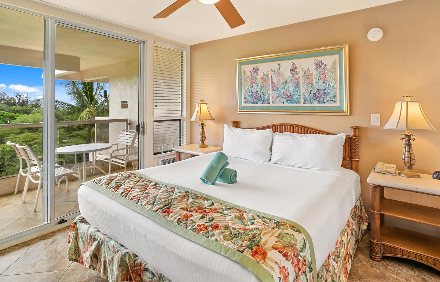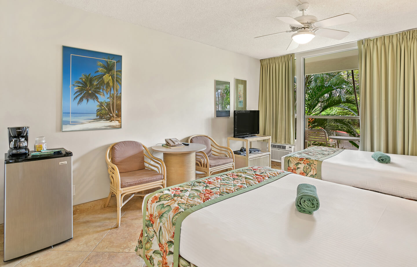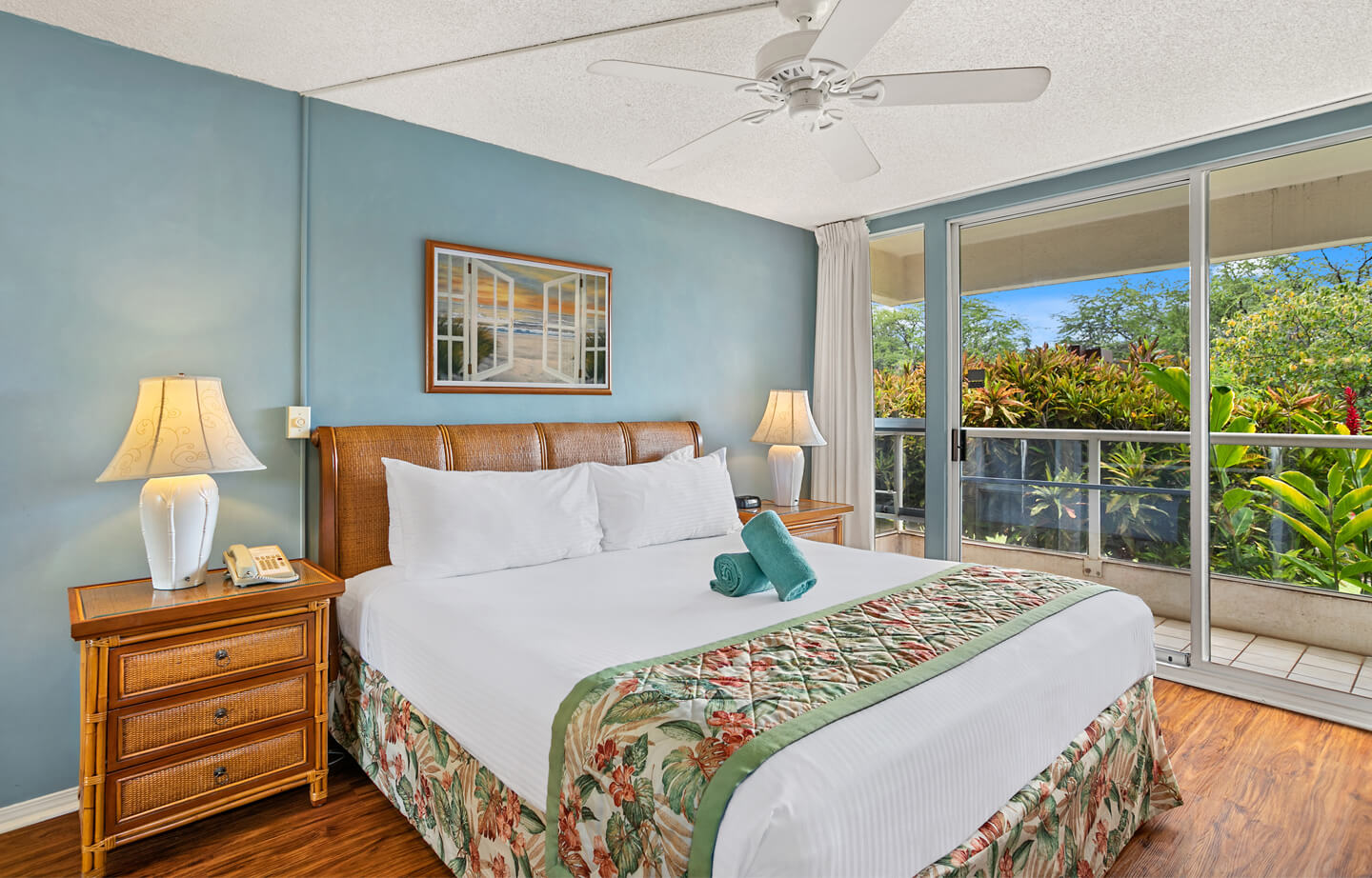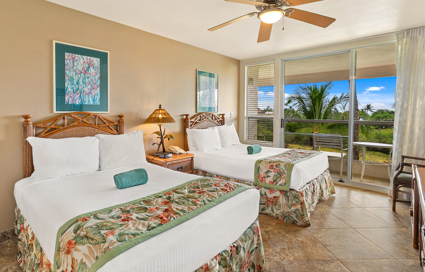 Deluxe hotel guest rooms offer upgraded furnishings and views of landscaped greenery from a private balcony. A short stroll takes you to Kamaole Beach or the on-site pool to bask in the warm Maui sun. Rooms features include a mini-refrigerator, coffee maker, and microwave upon request.