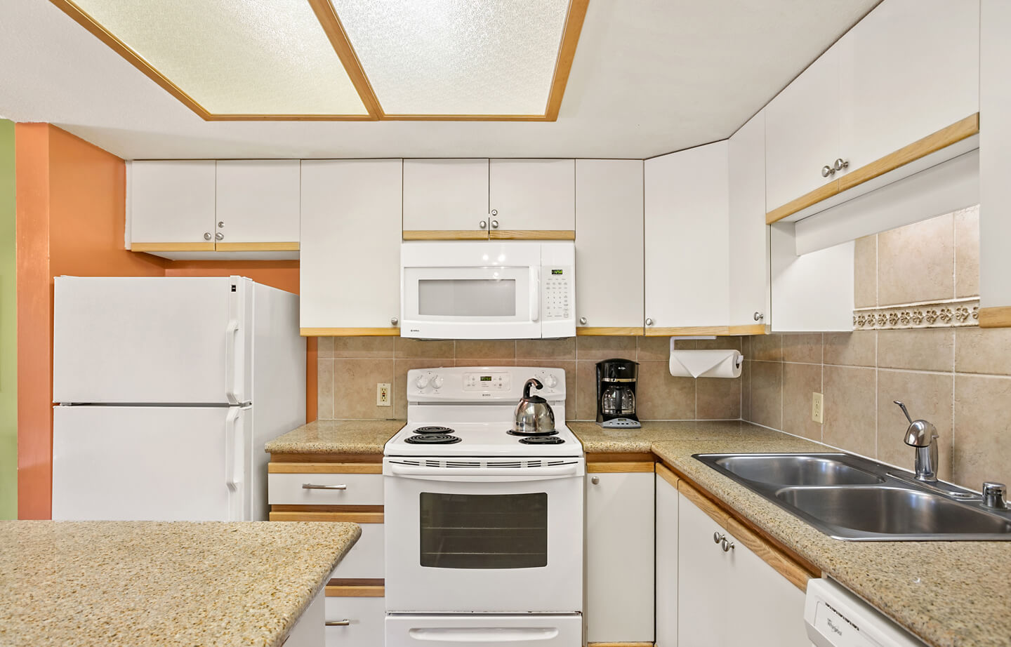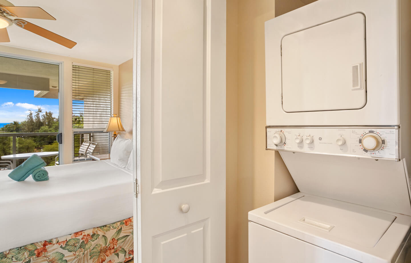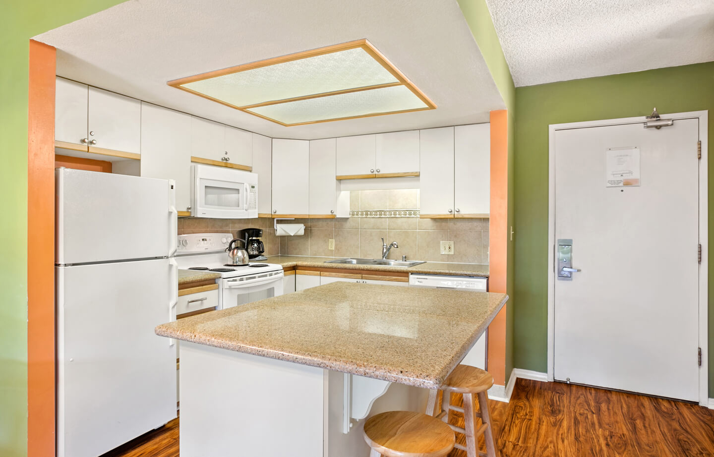 One bedroom suites were designed for today’s active and smart traveler offering a separate living area, full kitchen, and in-suite washer/dryer. After a day of adventuring around the island, guests can cook a warm meal and kick back on the private balcony.