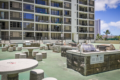 Aston at the Waikiki Banyan is just one full block from world-famous Waikiki Beach; and near the Honolulu Zoo, Kapiolani Park, and the Diamond Head State Monument. Each suite has a separate living area, fully equipped kitchen, private balcony, and WiFi Internet access. A variety of thoughtful resort amenities offered include Waikiki’s largest recreation deck, complete with a children’s playground, heated swimming pool, barbecue stations, and two jet spas. There is also an on-site convenience store and Banyan Breeze Coffee Shop in the lobby.