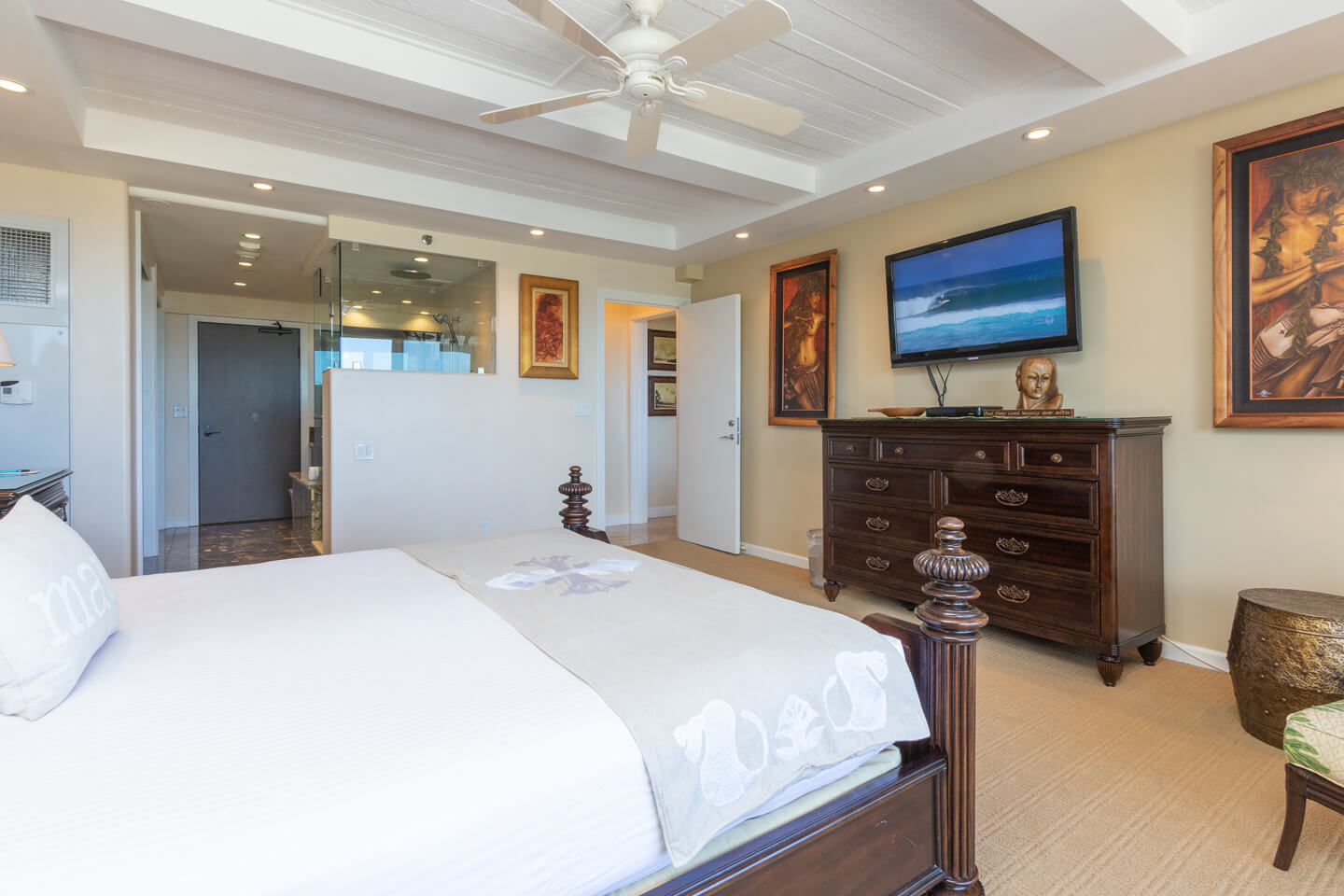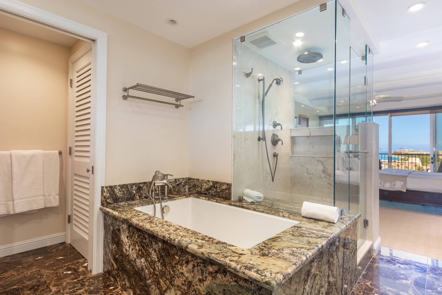 Enjoy this premium style one bedroom suite with tranquil ocean views. Suite features updated furnishings, two bathrooms, a living area, fully equipped designer kitchen, and private balcony.