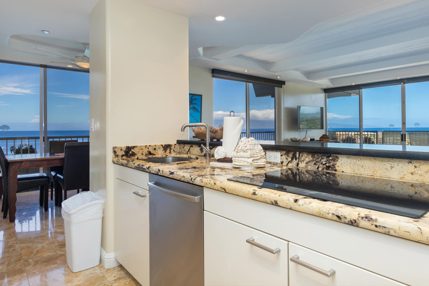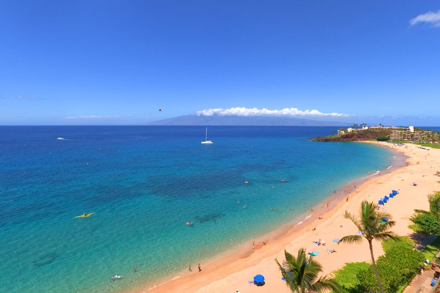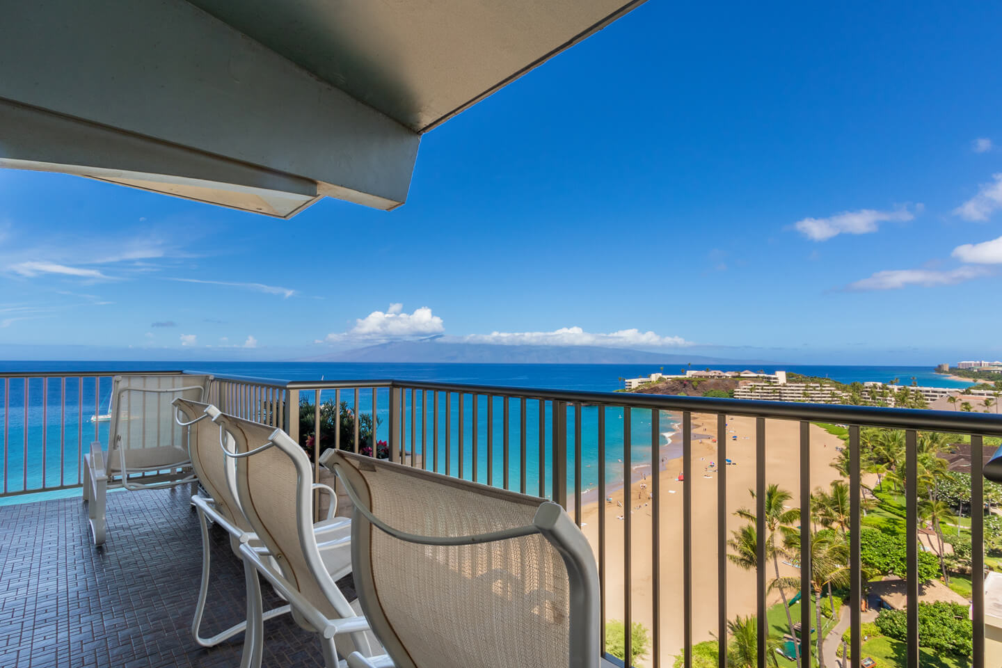 Perched above the beachfront from the best suite in the house—this is a dream Maui vacation come true. Savor serene oceanfront views of the Pacific and a large private wraparound balcony for lounging. Suite features two bedrooms, two bathrooms, a living area, and a fully equipped kitchen.