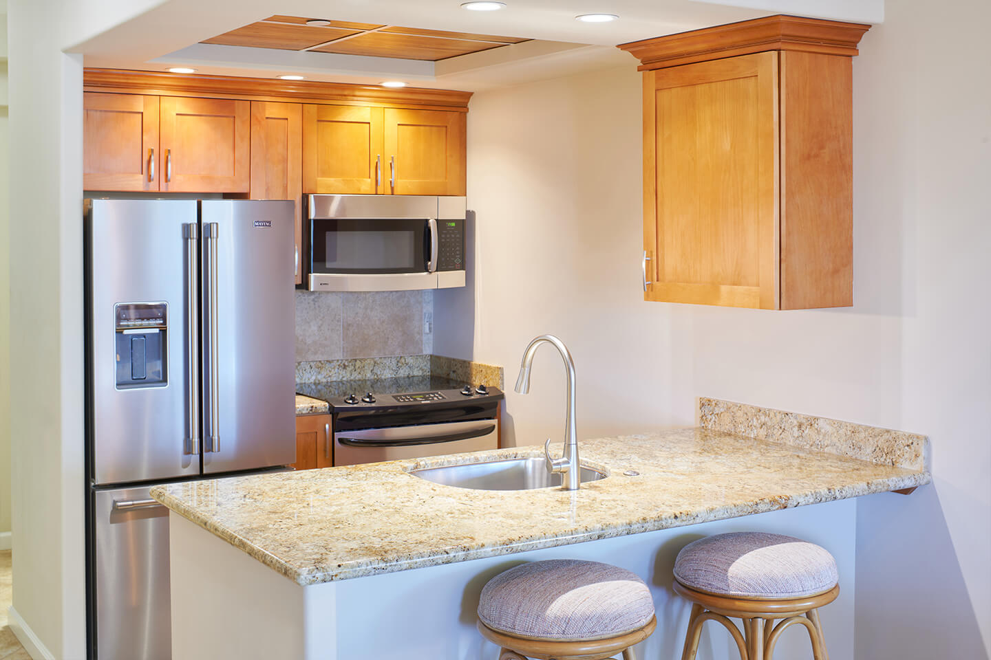 Studios and suites at The Whaler offer the perfect haven to relax between your island adventures. Spacious and comfortable, each unit features a full kitchen and private balcony. For the ultimate Kaanapali Beach luxe getaway, select a Premium studio or suite with upgraded furnishings and appliances. All accommodations include WiFi internet access.