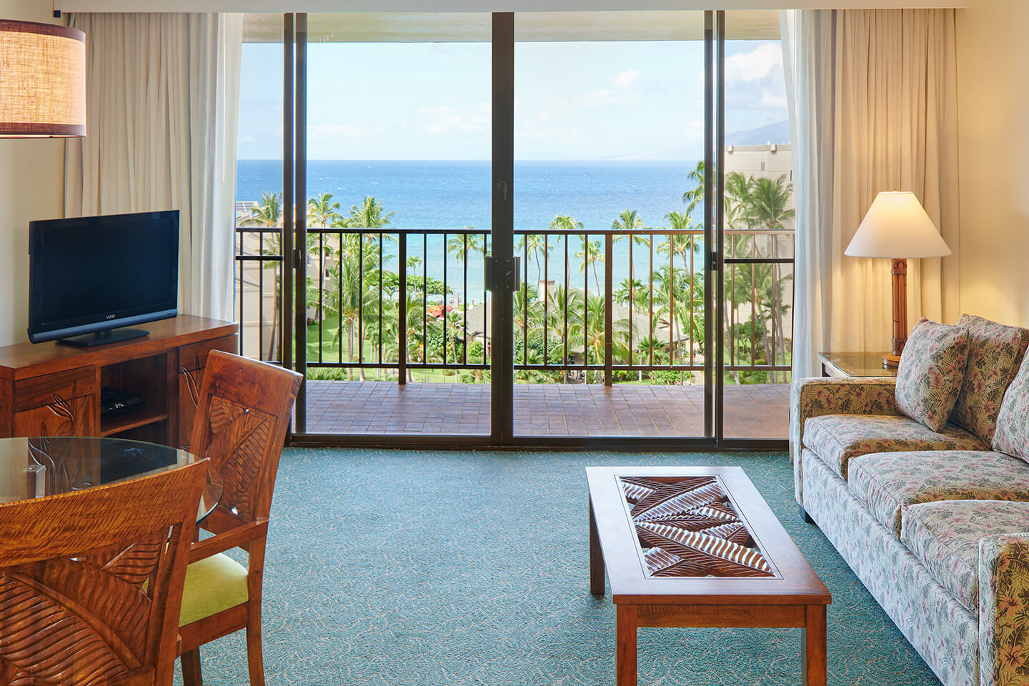 Truly get away when you stay in an Ocean View Suite. Suite features one bedroom with a separate living area, full kitchen, washer/dryer, and private balcony. Room view, inclusions and layout of rooms may vary.