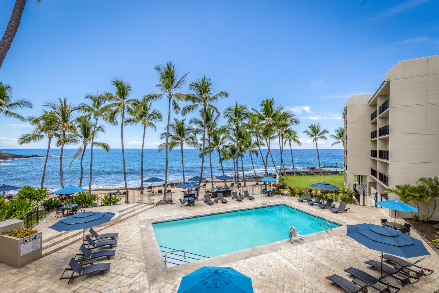Perched above a rocky cove on the Kona coast and surrounded by a tropical landscape of flowering plants and wild ginger, Aston Kona by the Sea is the perfect setting for your next vacation. Enjoy the oceanfront swimming pools, jet spas, barbecue grills and sandy lounge area. The property is nearby local shops and restaurants and many of Hawaii Island’s most popular attractions.