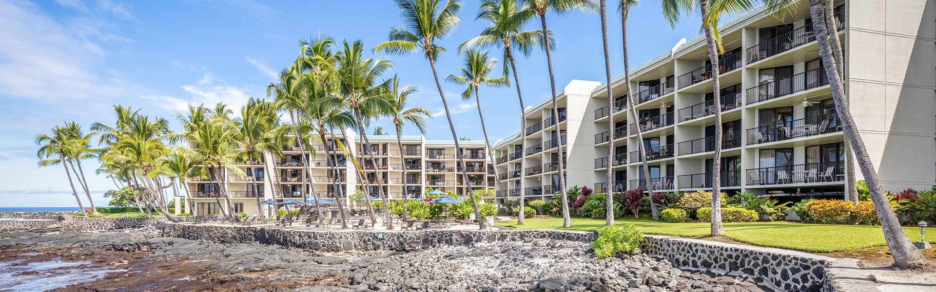 Experience luxury with oceanfront views from your private balcony in these spacious suites that feature one bedroom, a fully equipped kitchen, separate living area, and an in-room washer/dryer for added convenience.