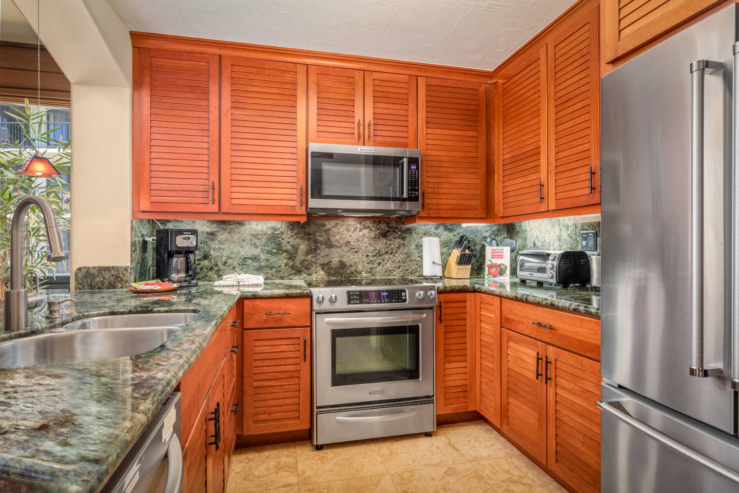 Two bathrooms, air conditioning, bathroom amenities, blackout curtains (some), coffee maker, dining area, dishwasher, hair dryer, in-room safe, iron/ironing board, full kitchen, kitchenware, microwave, non-smoking, oven, private balcony/lanai/patio, refrigerator, rice cooker, separate living/sitting area, shower/bathtub combo (some), shower only (some), stovetop, washer/dryer