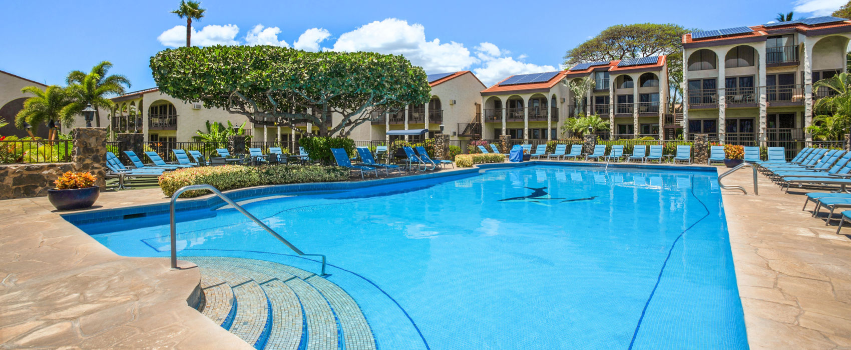 This expansive three bedroom suite offers ocean views plus maximum space for families and groups while staying in Maui. Suite features three bathrooms, a living area, full kitchen, washer/dryer, and large private balcony.