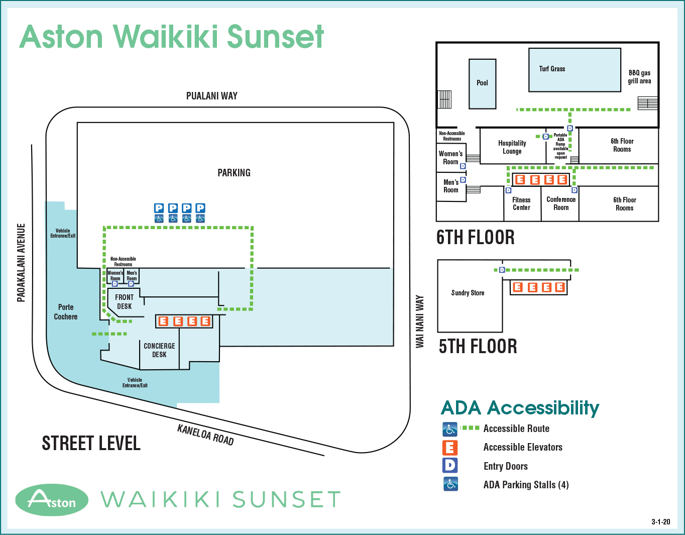 For more information about our accessibility features across the property, or if you have questions about a special service relating to a specific disability need, please call 1-855-945-4092. Rooms at the Aston Waikiki Sunset are individually owned and controlled and therefore, rooms with accessible features are not available.