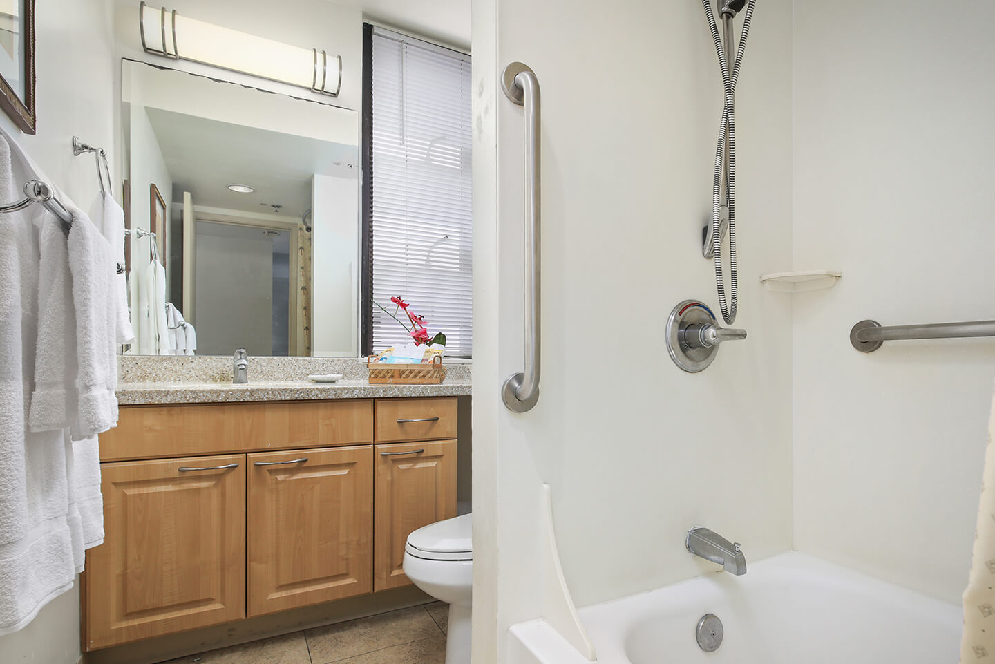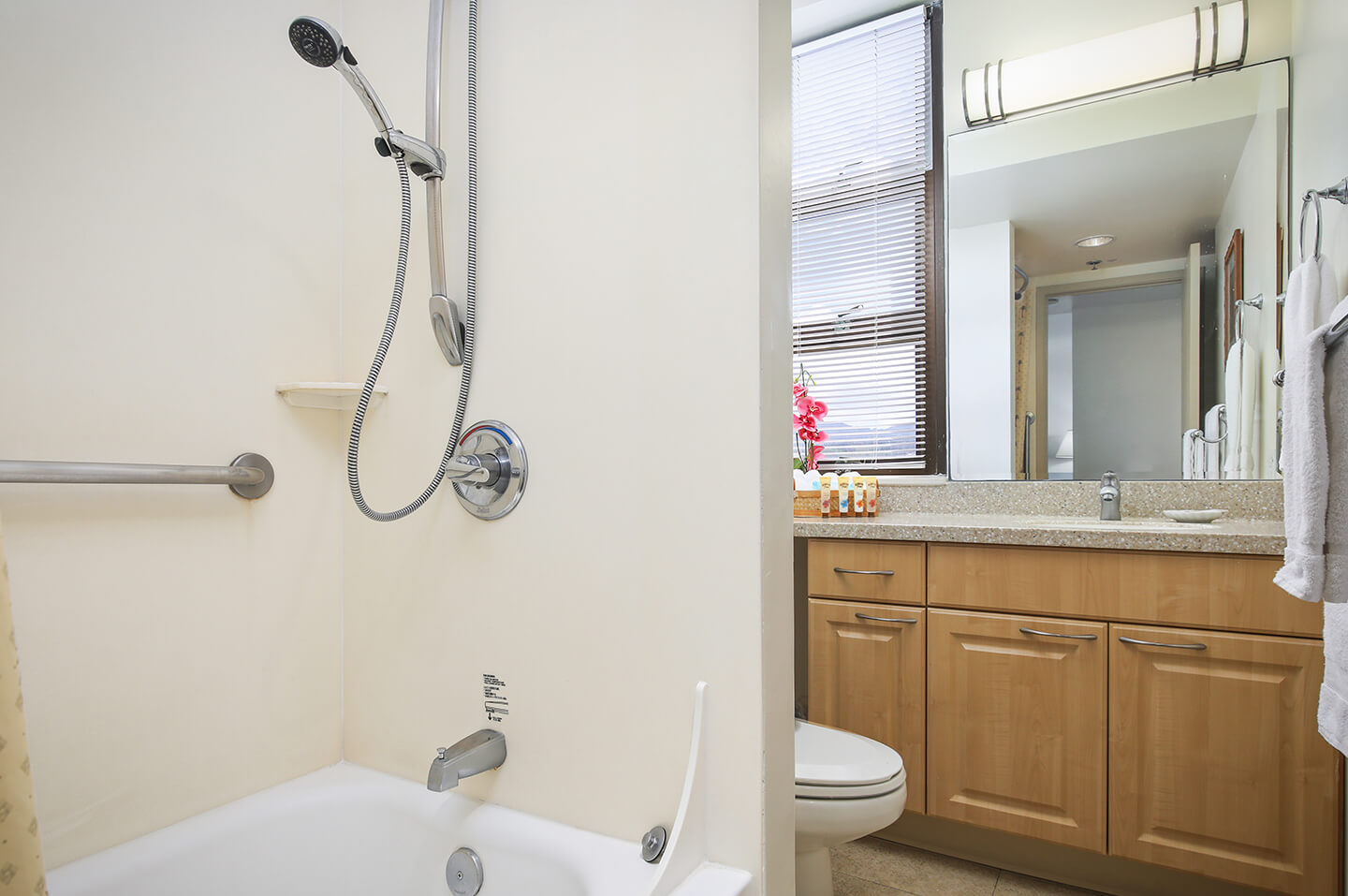Located on floors 6-14, our standard suites offers all the necessities. Suite features one bathroom, a living area, full kitchen, and private balcony.