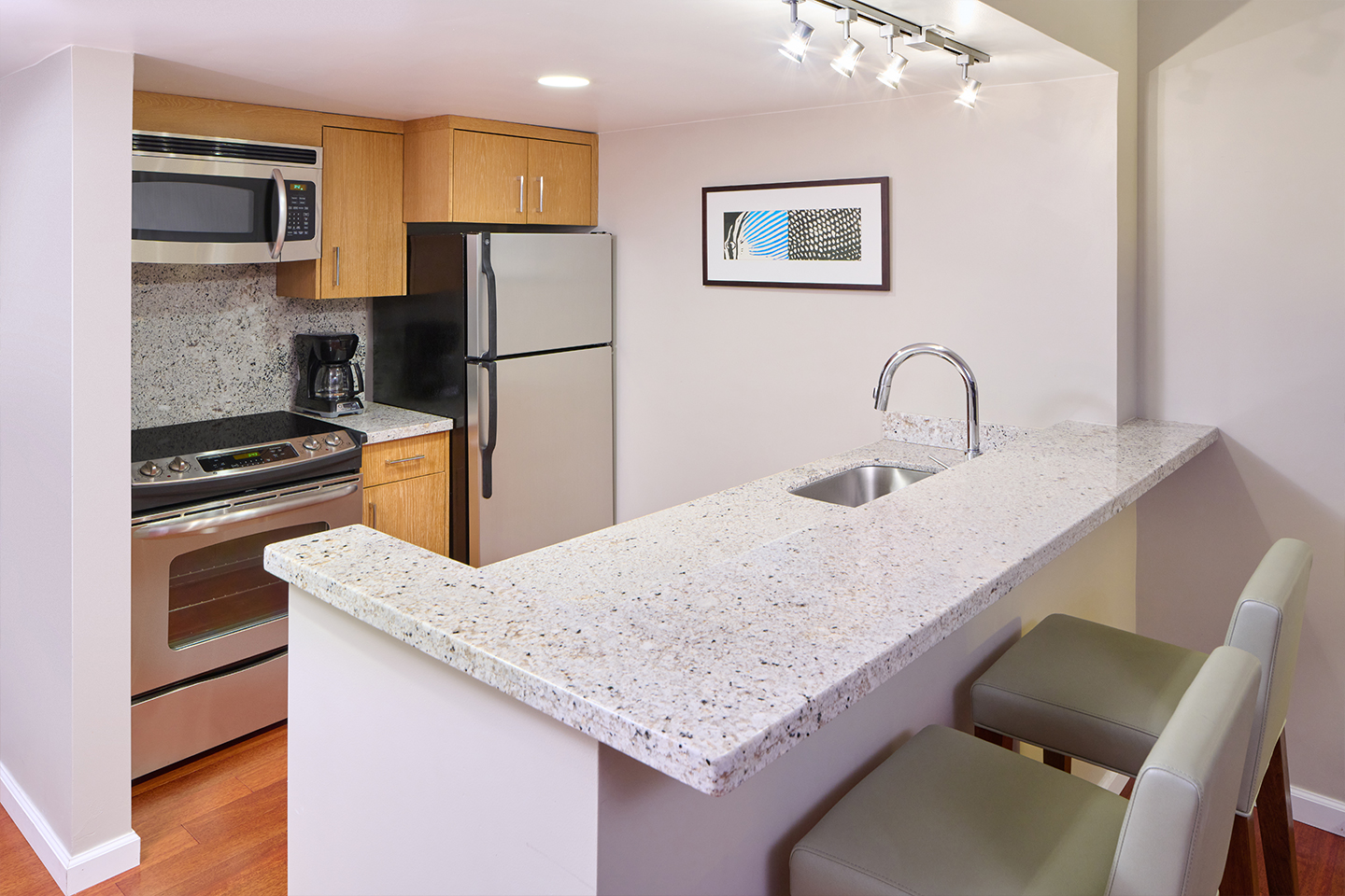 non-smoking, 40-inch LCD TV, air conditioning, alarm clock radio, blackout drapes, DVD player, coffee maker, full kitchen with a 4-burner stovetop, hair dryer, in-room safe, iron/ironing board, microwave and toaster, private balcony, queen sofa bed, rice cooker, shower, telephone with voicemail