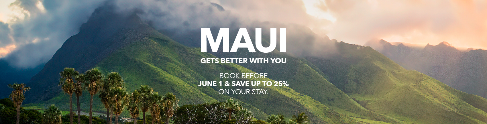 Save up to 25% on your stay with a free room upgrade (if available at time of check-in) at any of our Maui properties. Simply book by June 1, 2024 (travel dates: now through September 1st, 2024).
