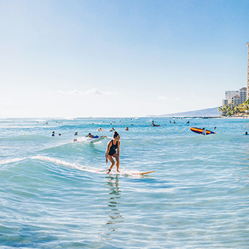 From first timers to seasoned pros—Waikiki is a surfer's paradise. The span of Waikiki's coastline offers a variety of breaks that range from rolling gentle waves to high rising peaks.