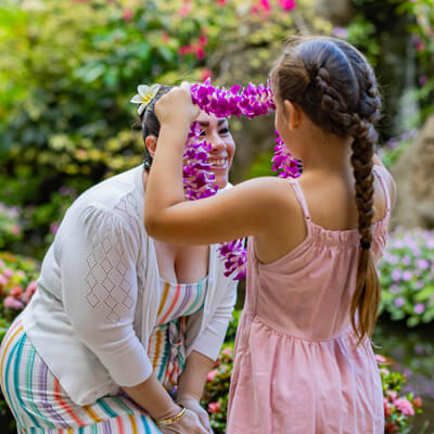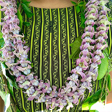 Lei is presented by bowing and raising the lei to be offered to the recipient. The person being gifted the lei can then smile; hug or cheek kiss the giver in thanks. Lei is usually worn draped around the shoulders or crowned on the head as a head lei or lei poʻo. It is considered polite to remove a lei discreetly and with care, and never discard it in front of the giver.